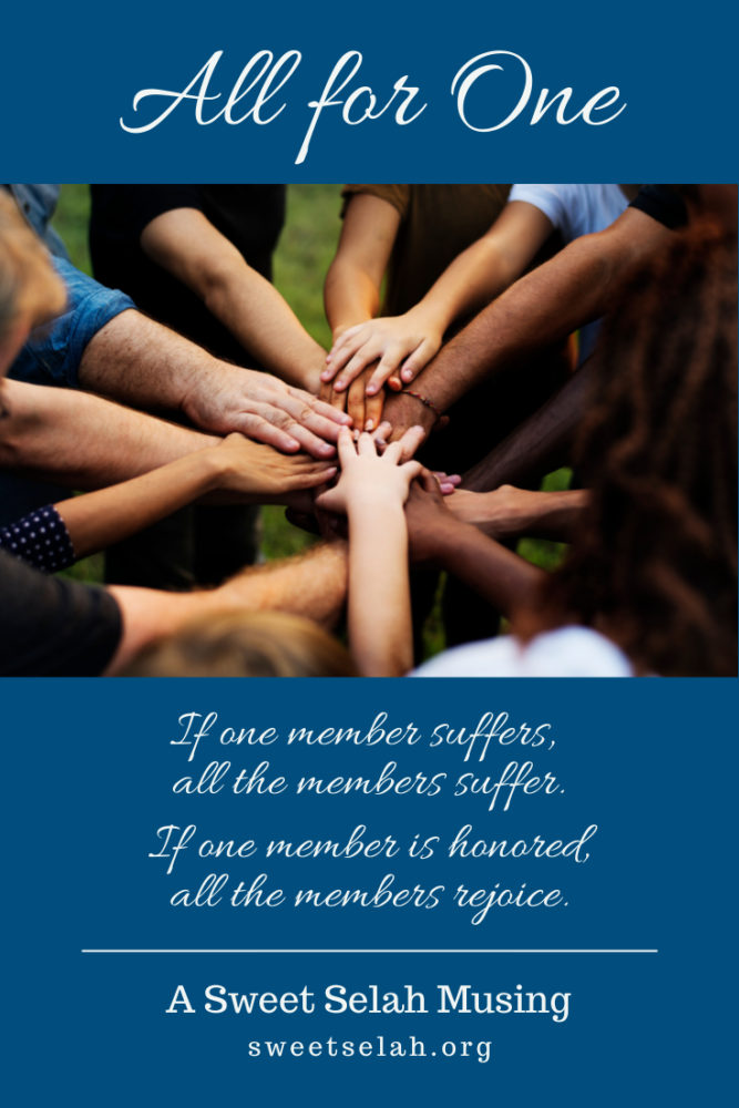 And if one member suffers, all the members suffer with it; or if one member is honored, all the members rejoice with it. —1 Corinthians 12:26 NKJV
