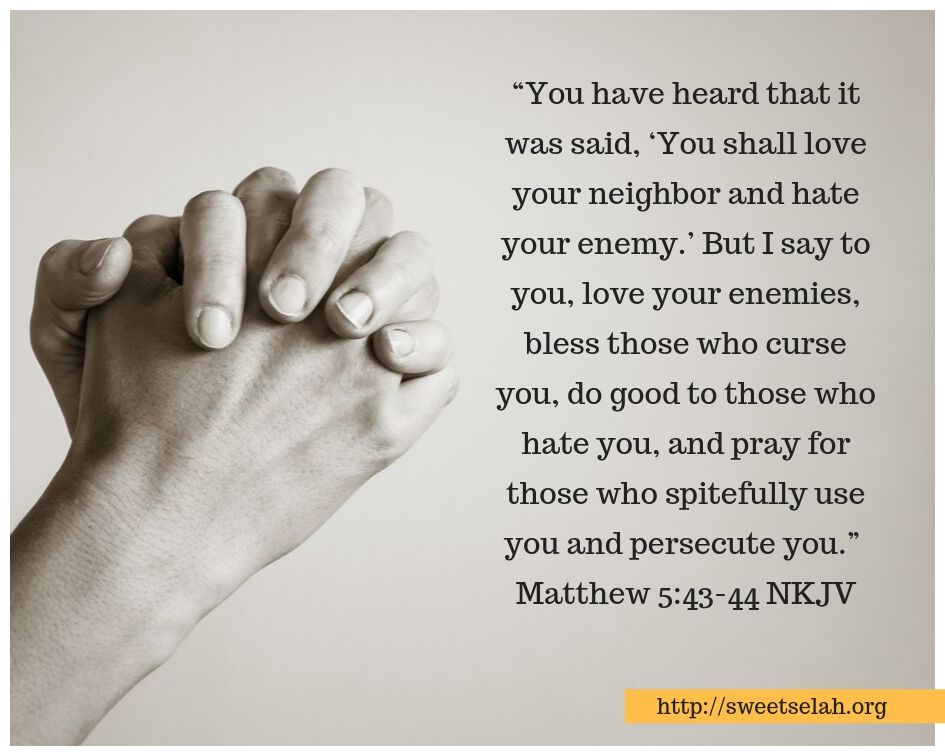 “You have heard that it was said, ‘You shall love your neighbor and hate your enemy.’ But I say to you, love your enemies, bless those who curse you, do good to those who hate you, and pray for those who spitefully use you and persecute you.” —Matthew 5:43-44 NKJV