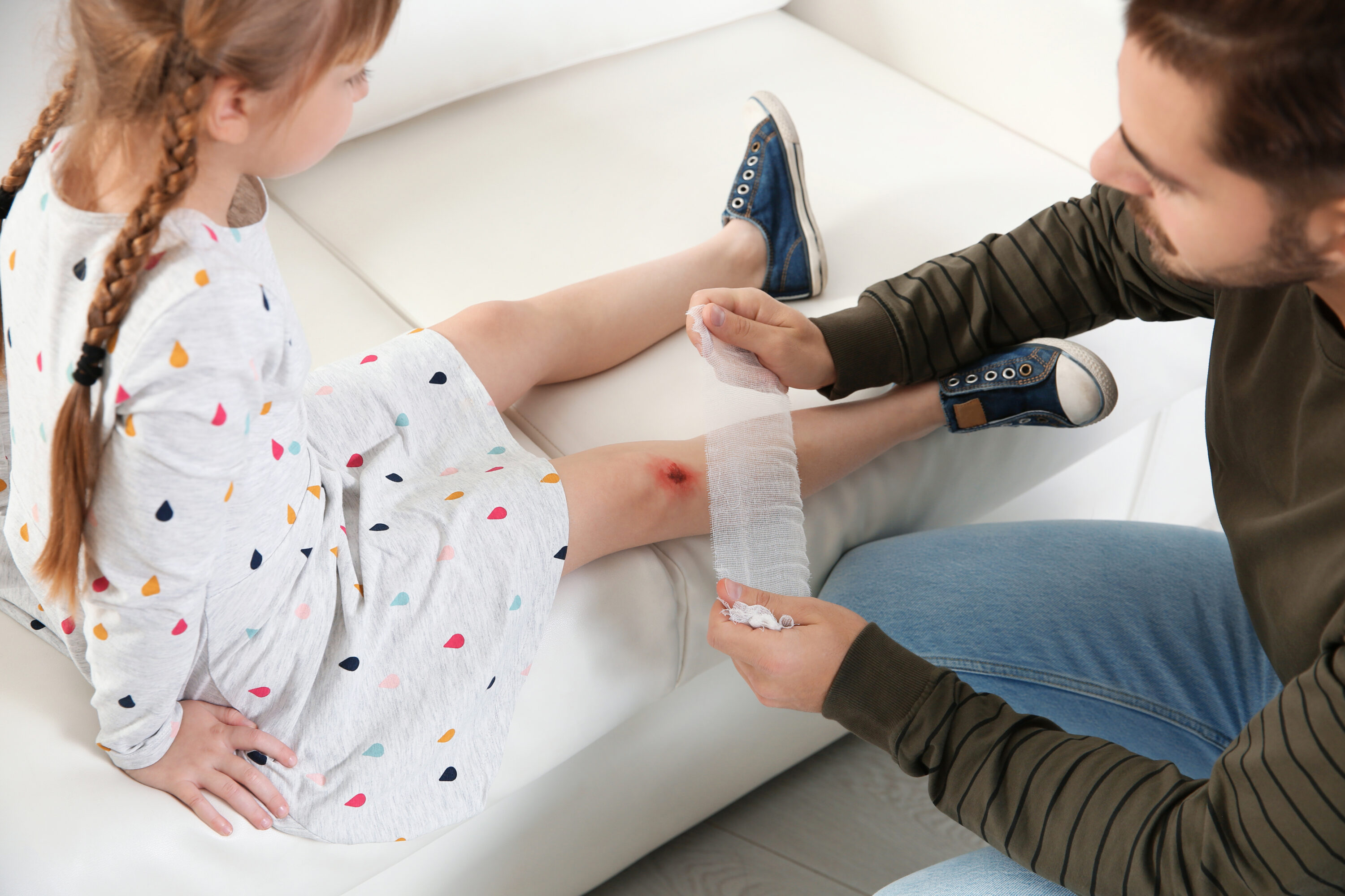 One of my childhood memories is about falling on some broken glass and getting a deep cut. I ran home crying and screaming. I was about five years old and very frightened as I dashed into my father’s arms for comfort. Usually, my mother did all the bandaging, but she must have been out that day. I remember so well how he comforted me and made me feel safe in his care. Then, he began to repair the damage. He took his time and cleaned it gently, but I still have a scar 85 years later! You know what? I love my scar because it reminds me of my dear Daddy and his love for me.