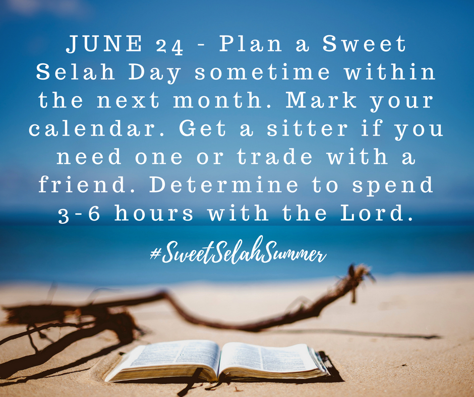 They are days to decompress. Days set apart for listening and being still. I hope you'll try one. Start with 2-3 hours and expand from there. My next Sweet Selah Day is scheduled for July 3rd. How about you? Have you put a date on your calendar? Oh I hope you DO!! You won't regret it.