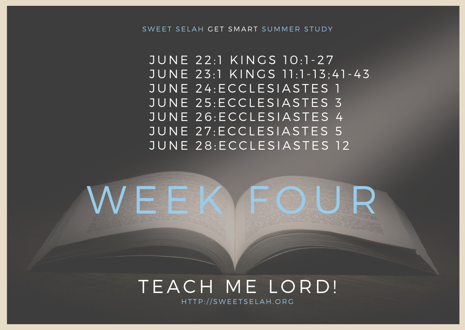 Can you believe we are almost at the end of our study? We have one more reading in Week Three, and then we start Week Four on Saturday, studying Solomon's last days. Are you ready to ponder with me? Hope so! Let's finish strong together. As always, feel free to comment below or to email me at sharon@sweetselah.org. I'd love to know how you are doing with this study.