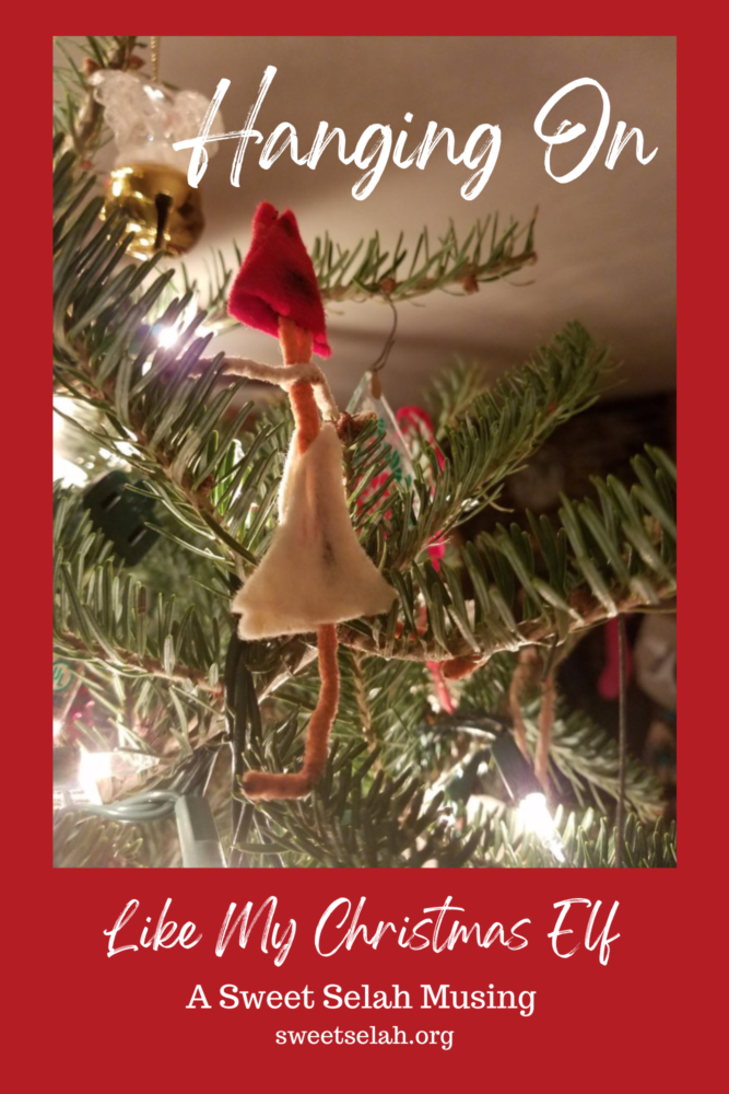 At times in my life I feel a lot like that little elf. I’m not in tip-top condition, a bit wobbly—but I know my job, and I will do it with all my remaining strength. I’ll cling faithfully, not to a tree branch, but to my Heavenly Father’s hand.