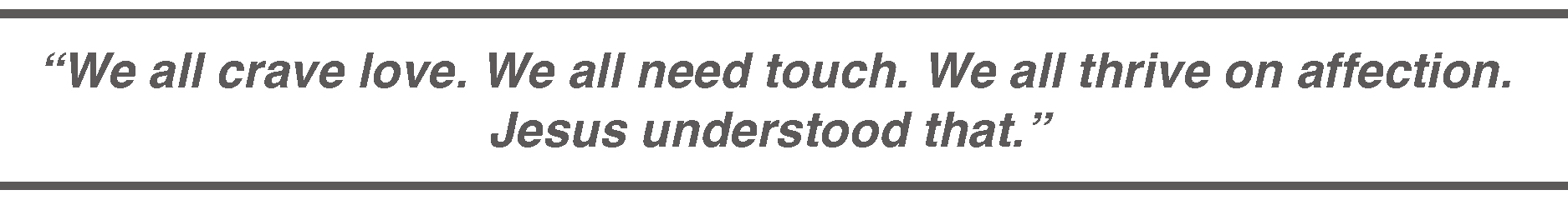 We all crave love. We all need touch. We all thrive on affection. Jesus understood that. He frequently touched the untouchables, the hurting, and those dying to be loved.