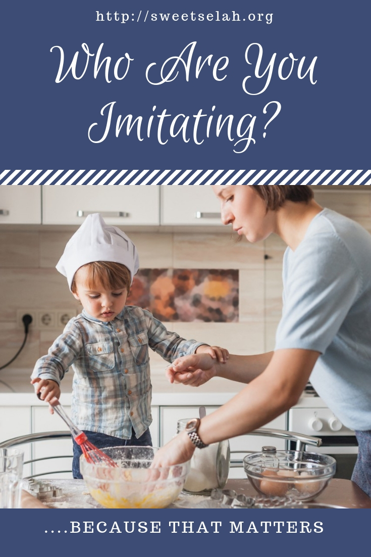 This granddaughter and her family are temporarily living with us, so she has ample opportunities to watch and imitate her Nina. We do tend to imitate those closest to us, don’t we? If we are surrounded by cursing at our workplace, we find ourselves having to guard our tongues. If we hang around gossips, before you know it, we’re joining in. Oh, how careful we must be when it comes to imitation.