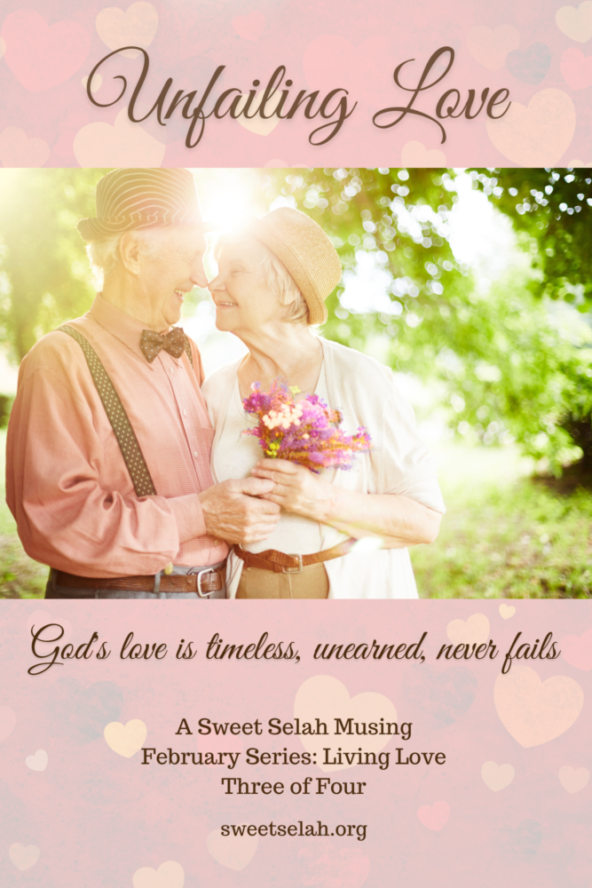 Father, thank You for Your unfailing love that knows no bounds and has no end. Thank You for the unfailing love of my husband and the examples of those in my life like Bob and Bunny. Help me to love others with your unfailing love. I love You, Lord!