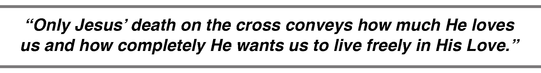 Ahh! You say, can this be? Can someone fully know me and still love me completely? Yes! Nothing you can do would cause God to stop loving you. While we were still sinners, Christ died for us! Only Jesus’ death on the cross conveys how much He loves us and how completely He wants us to live freely in His Love.