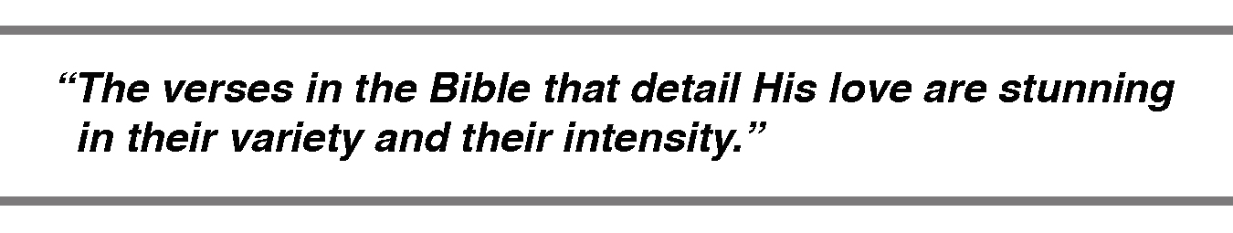 This is all the more striking because God also notices my hair. Yes, my hair. Jesus tells us that “even the very hairs of your head are all numbered” (Matthew 10:30 NIV). Seriously. Not even my mother has ever attempted to count the hairs on my head—and she loves me tremendously. Yet, here Jesus emphasizes the extent of God’s care for us by telling us that He knows us in such intimate detail He could tell us exactly how many hair follicles are attached to our scalps. Time after time, over and over, God tells us … We. Are. Loved.