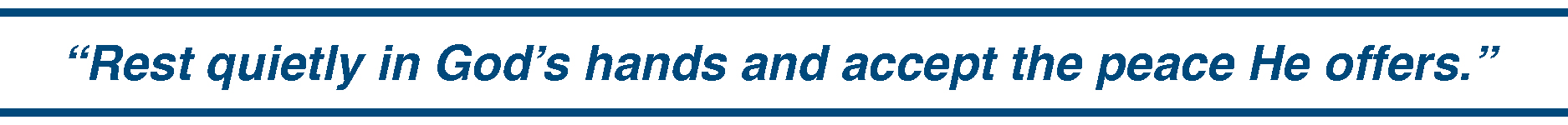 If only we could remember in times of fear, stress, sorrow, and frustration, just to turn it all over to God, rest quietly in His hands, and accept the peace he offers. Not just holding His hand but truly resting and trusting in His hands.