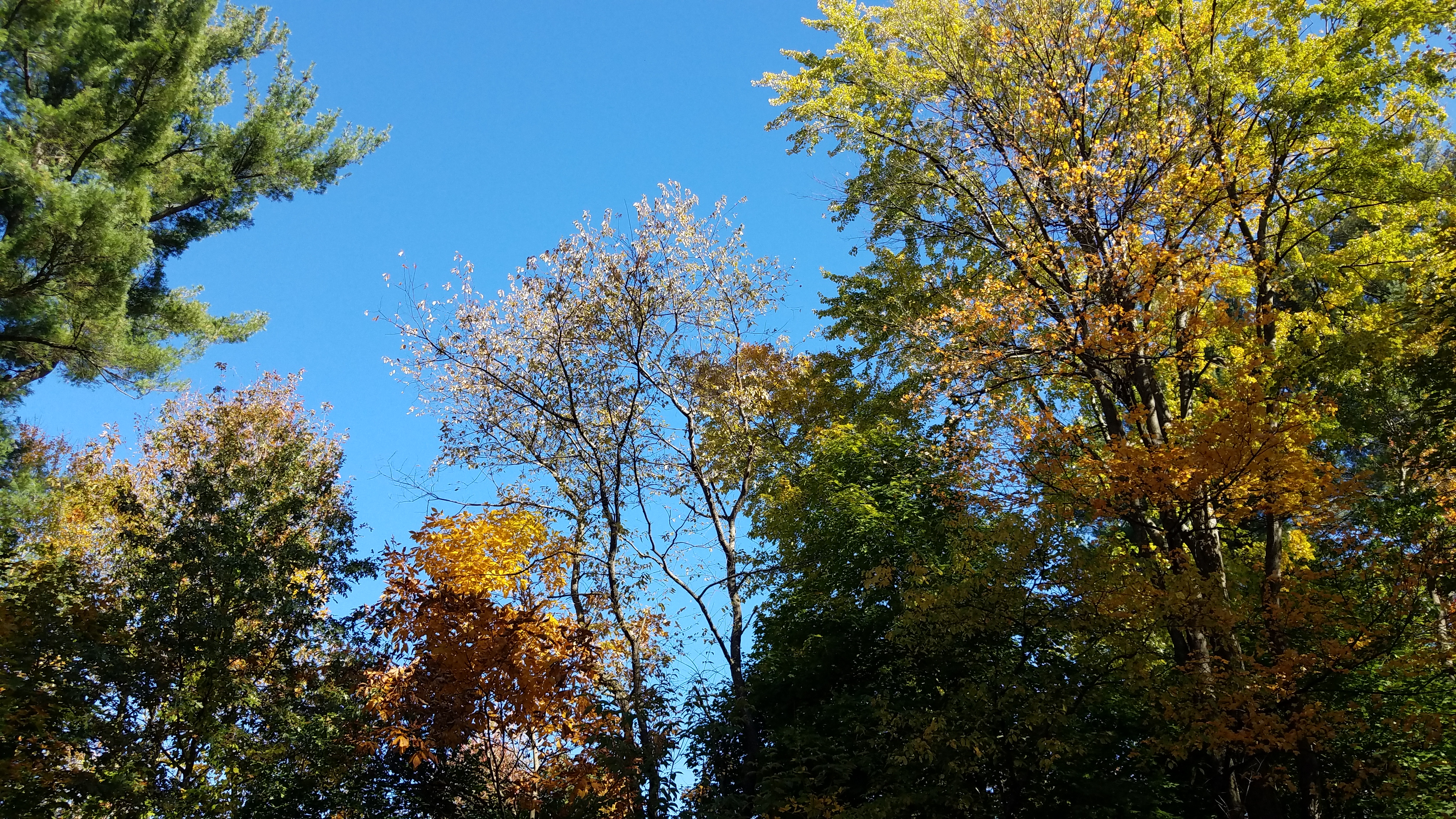 Oh, the glory of the changing leaves! I look up. Way, way up and admire. Jesus’ admonition in Luke 12 flits into my thoughts, “consider the lilies,”—but in my mind changes into “consider the trees.” And I do. I marvel at the way the soft wind rustles branches and leaves in a shimmery whisper. I watch a leaf fall, twirling and dancing in the wind as it finds its patch of grass below. Then another falls and another joins in the dance. I marvel that every single tree is different. Some of the trees in our back yard are still green. One has already loosed every leaf and stands in gaunt stillness surrounded by tall pines, still green against the rich blue sky. Others are orange or yellow or red. Each unique. I know without looking that each of those leaves tumbling lazily down from great heights are also one of a kind.