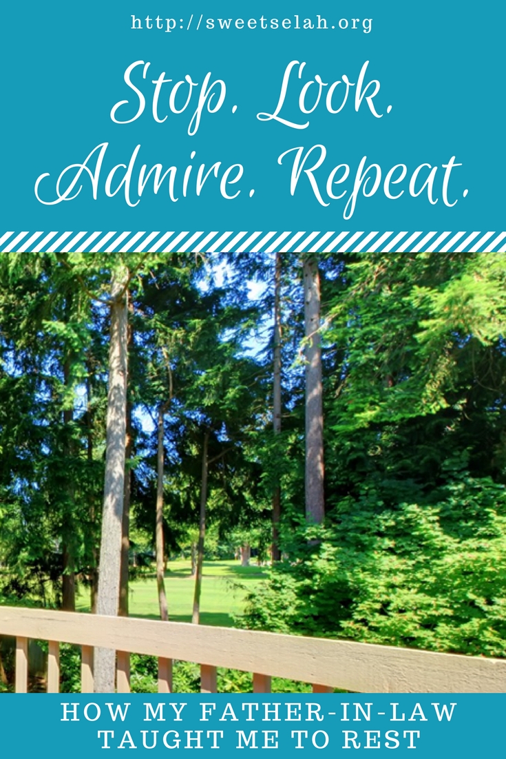 Selah simply means to “stop or pause.” We don’t do this enough. We hurry and scurry to keep up with self-imposed schedules and the expectations of others—and we miss so much. In the midst of duties and deadlines, I am determined to carve out “sweet selah” times. I want to drink in the beauty of this world that shouts of its Creator. Thanks, Dad, for the lessons.
