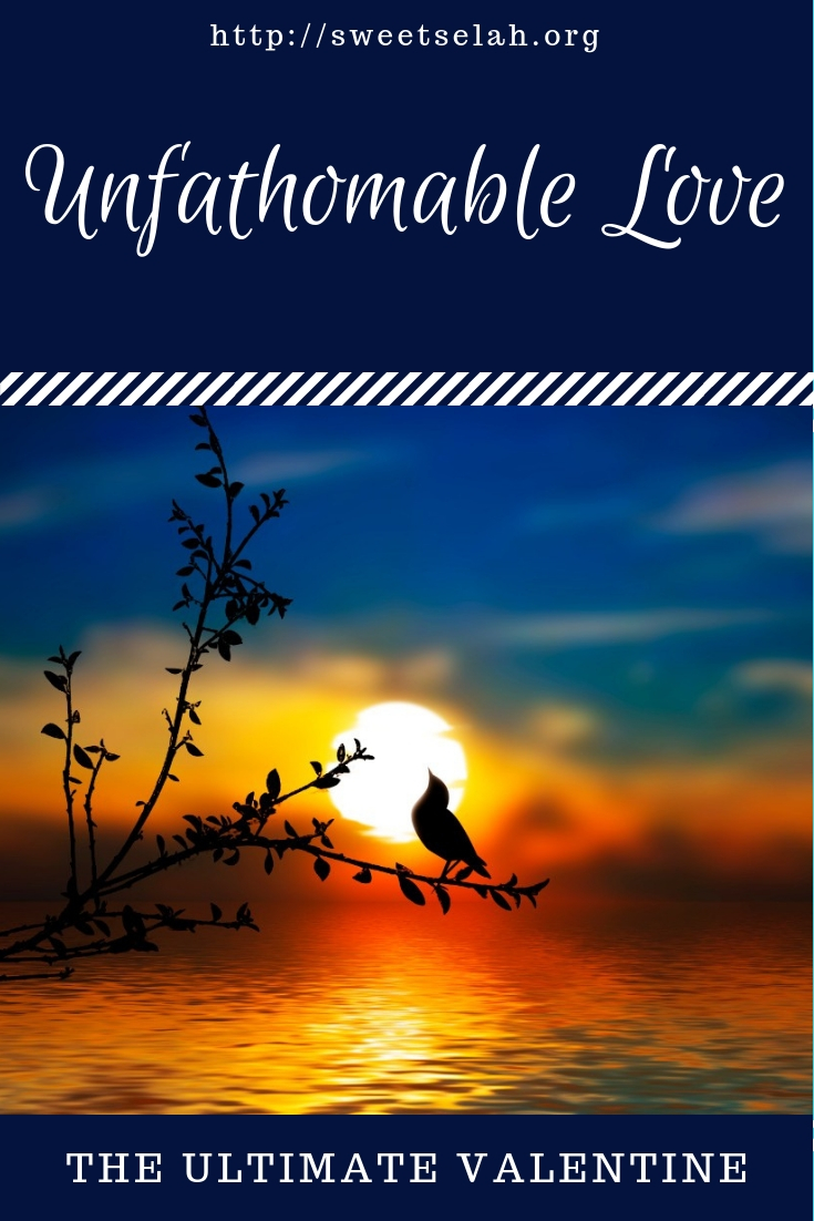 God’s unfathomable love will be our focus here at Sweet Selah Ministries for the month of February. Each day, click sweetselah.org/quote-of-the-day or visit our social media sites to read a verse from Scripture about God’s deep love for you. I’m calling these Bible verses “Valentines from God,” and I’ll also share a short thought about each one. The goal? That you may truly grasp, from the top of your head to the tips of your toes, that you are eternally loved. Let’s unwrap a valentine every day, shall we? The sheer number of verses telling us of God’s love is an indication that this is a message He wants us to fully know.