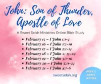Whatever method you choose, would you let us know? It would give us such JOY to know that you are carrying on with daily time with the Lord each day. Having a plan in place will help you not miss a day. You can start right in with something new on March 1st. We will pray for you as you begin. You can comment right here, or ... you can email Sharon at sharon@sweetselah.org and share there. Also, don't forget we'd love to have you on our email list. That way, you will know when future studies are happening. Sign up by writing to: sharon@sweetselah.org. In any case, thank you for taking this journey with us! Love and Blessings, The Sweet Selah Team