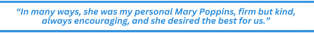 That quiet moment of faith came years after we first met. We had moved to Oregon from Nevada when I was eleven, and my mother met Florence, who, with her English accent and elegant style, became an aunt to me. She was in her forties when she and my mother became friends. They shared a birthday and a tenacious spirit. From the start, Florence was a mentor and friend to me. When I was a young teenager, she hired me to make signs for her second-hand clothes shop and taught me the difference between quality clothing and “rubbish.” She even attempted to teach me how to drive in her 1968 Ford Mustang. (She was particularly proud of this muscle car, so it was an honor when she let me get behind the wheel.) Florence took us to Shakespearean plays, brought us along on her shopping sprees, and taught us how to use a fork and knife “properly.” In many ways, she was my personal Mary Poppins, firm but kind, always encouraging, and she desired the best for us.