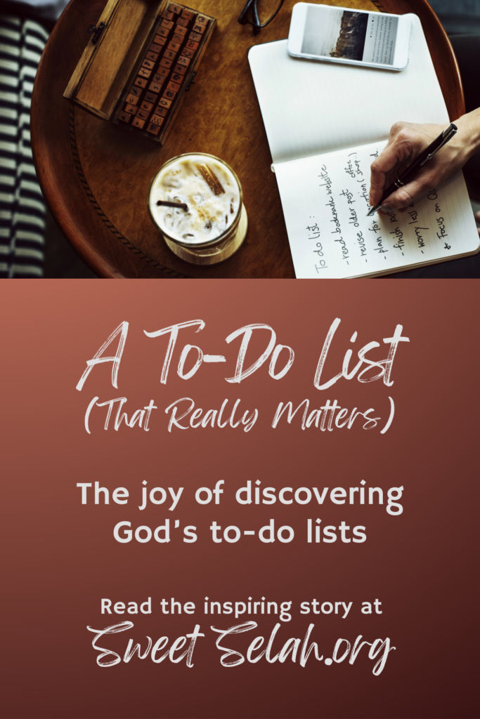 I am a list maker too, Brittany! This to-do list is more important than any. I could make up on my own. I’m going to spend some time thinking about which one God would have me focus on. Welcome to the team!! ❤️