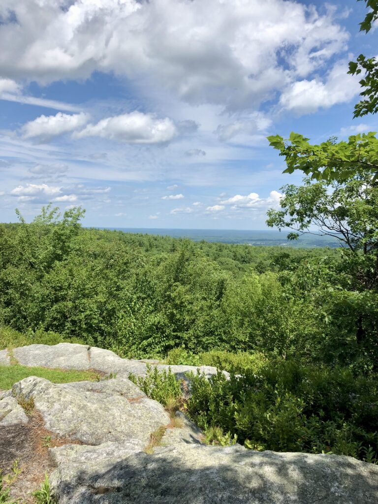 I knew there was a way to find it, I just didn’t know how—and finding my way back home would be even harder. In my growing-up years, Bauneg (sounds like “Bonny”) Beg Mountain* was all privately owned property. My brother and I had been lost more than once in its woods while ever in search of the infamous and elusive “Devil’s Den,” a craggy outcrop of caves and boulders on the top of the middle peak. From the late 1930s to the late 1950s, Bauneg Beg was home to the Bauneg Beg Ski Club, which drew skiers from all over the area. The ski area is long gone, and the mountain is now completely reforested, but its beautiful summit offers hikers stunning views of the White Mountains in one direction and the Atlantic coastline in the other.