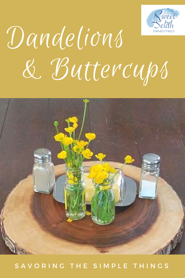 Heavenly good Father, thank You for little blessings like patches of buttercups planted for our enjoyment and wonder. Forgive me when I allow busyness to block out beauty. Thank You for Jesus’ wise words. Help me to abide “in today.” Help me to trust that You will meet me in my tomorrows as well—no matter what. I love You, and I love Your wonderful created works! In Jesus’ Name, Amen.