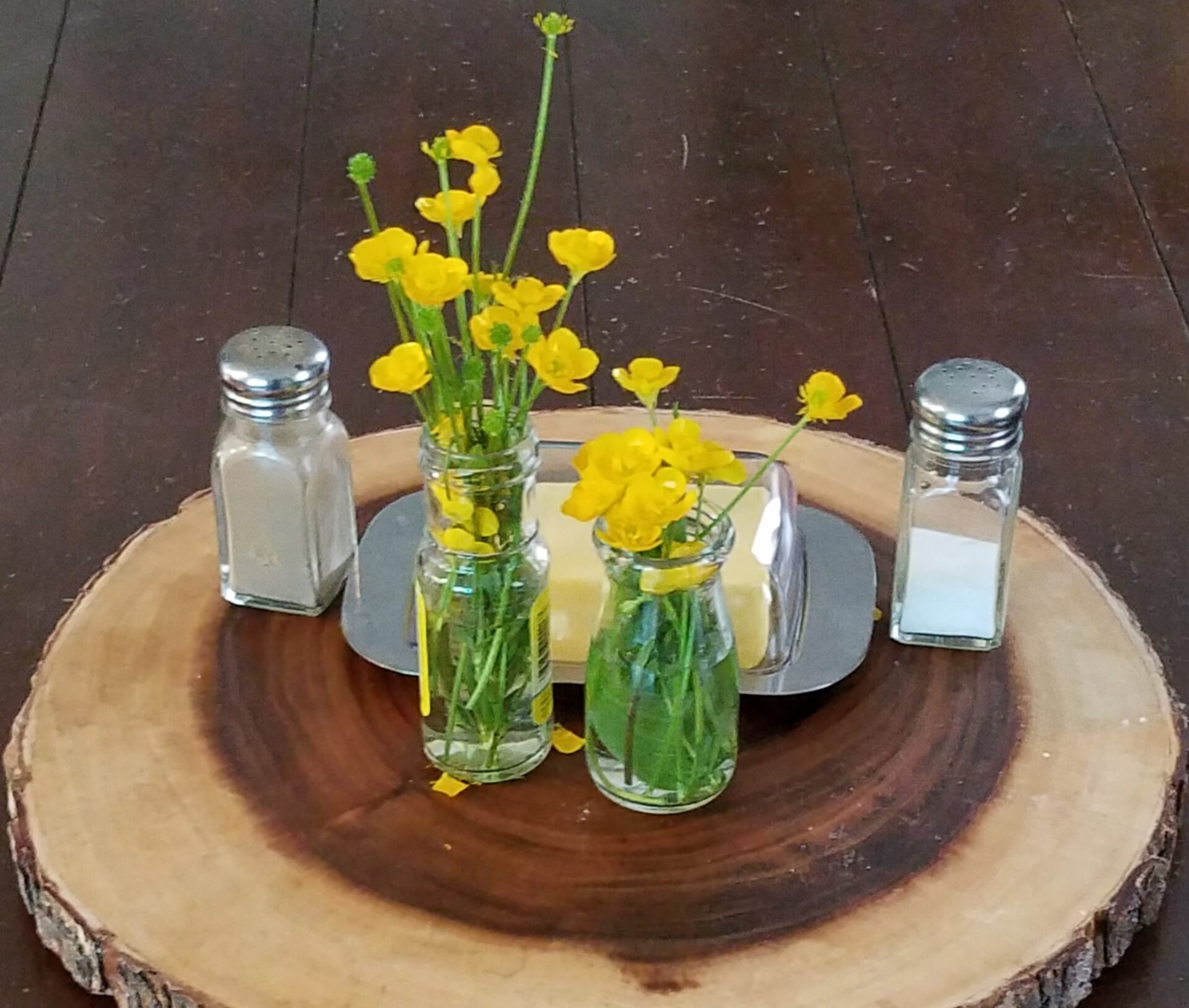 As we started down the trail, we hadn’t progressed more than three feet when my two grandsons were off and running toward a field of dandelions and buttercups. The grass was spring green fresh and the bright sunny yellow of those humble flowers warmed my heart. My tiny granddaughter, never one to be left behind, toddled off the path to catch her brothers and join the awe and wonder and great delight. The best dandelions ever! Some were past their bloom and ripe for making wishes as we blew their seeds into the early evening air. Some were still full of shining yellow brightness. Buttercups, dainty and slender, were picked by the dozens and handed like great treasures to Nina and Mama. We received the gifts with the respect they were due.