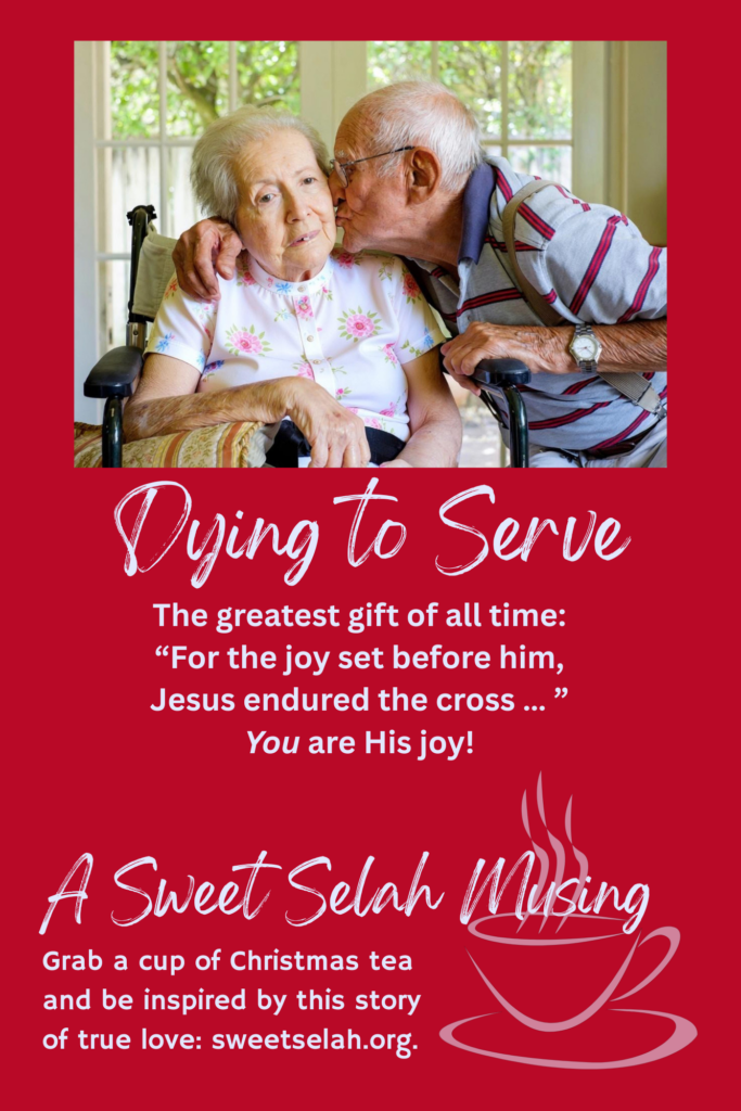 This man models for me what it means to be a true servant. My mother’s smile is his thanks as he repeats the same tasks day after day and sits by her side as she sleeps. His one desire is to be faithful to his bride until God calls her home. He is motivated by his love for her.