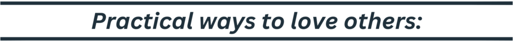 I’ve been pondering these two verses from Paul’s letter to the Romans: “Don’t just pretend to love others. Really love them. Hate what is wrong. Hold tightly to what is good. Love each other with genuine affection, and take delight in honoring each other.” Paul seems to know that genuine affection can be hard to find. It’s often easier to “pretend” to love by being kind briefly in a group setting than it is to really love and connect with someone on a deeper, more intimate level. Paul goes further. He urges us to “take delight in honoring” others. We’re called to do the messy work of truly loving. Here are three practical ways to love others that I have found helpful: