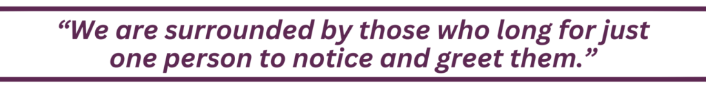 The chairs in our churches are filled with lonely people. We are surrounded by those who long for just one person to notice and greet them. What if, in those first few moments after the service, we sought out the lonely and the isolated before greeting our friends? By reaching out to the one who feels like a stranger, we are welcoming Jesus.