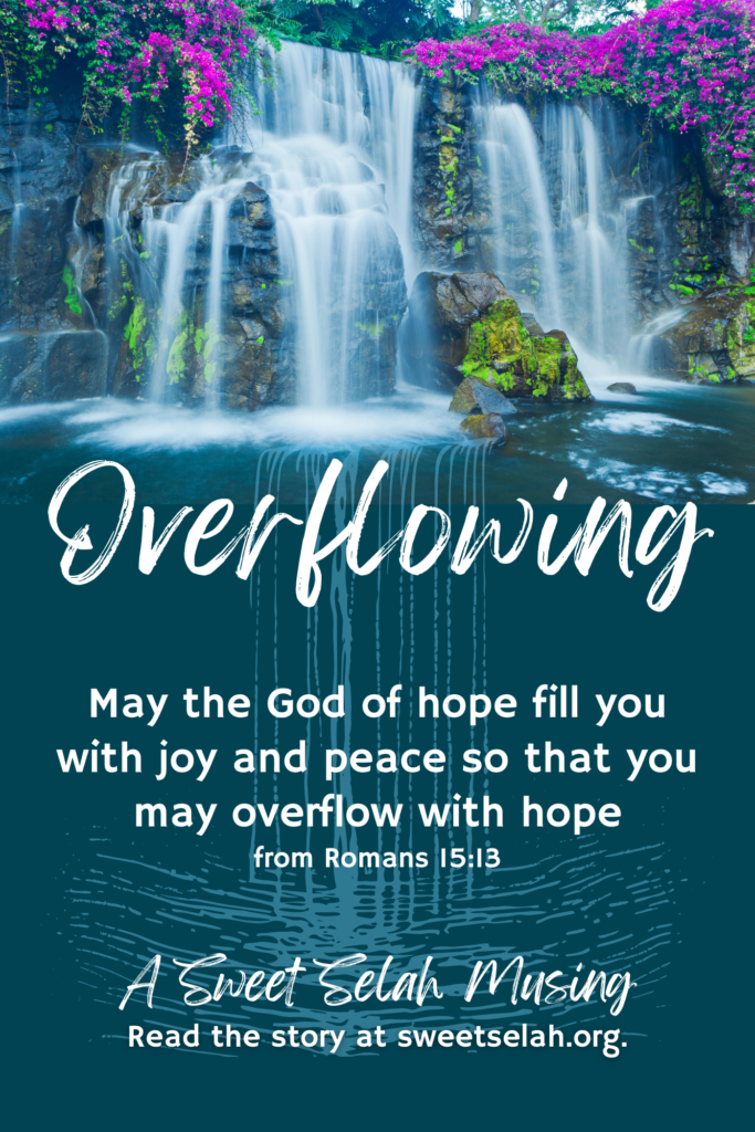 “May the God of hope fill you with joy and peace as you trust in him so that you may overflow with hope by the power of the Holy Spirit.” —Romans 15:13