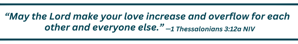 May we all strive to overflow with the love of God in a way that will attract people to Him. Let’s look at this passage in Galatians: “… the fruit of the Spirit is love, joy, peace, patience, kindness, goodness, faithfulness, gentleness, and self-control”  (verses 5:22b-23a NASB). If we were overflowing with the fruit of the Spirit, this would grow us in our own spiritual walk, day by day—and help us draw others to God.
