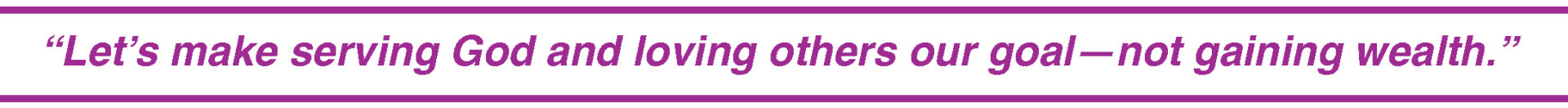 As I look back, I don’t feel we were deprived in the least. We took what we had, and God blessed it and gave us joy as a family. Is it easy to go without? Of course not. Did we have times of worry? Yes. I learned a lot about turning my worries into prayers. Also a good thing. But was there joy? You bet! Let’s make serving God and loving others our goal—not gaining wealth. More joy can often be found in a simple home seeking God’s blessing than in a mansion with swimming pools and fancy cars filled with people who still want more.