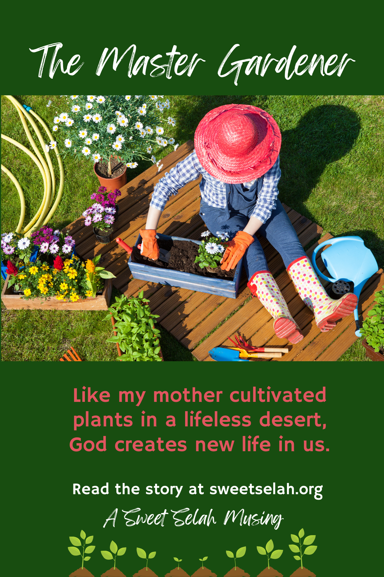 You see, God is a master gardener. Like my mother cultivated plants in a lifeless desert, God creates new life in us. He then develops our souls throughout our lives, making us more like Christ. I know this to be true because He replaced my heart of stone with a heart of flesh, giving me spiritual life. Not only that, but He keeps cultivating the soil of my heart, adding worms, compost, and manure. (Yes, we all have manure-like events that grow our hearts to be more like His). For some, it’s a physical limitation; for others, it’s relational difficulties; and for many, it’s financial woes. Manure comes in many forms but is always an opportunity for new life. For growth. For a little more depth of intimacy with Jesus.