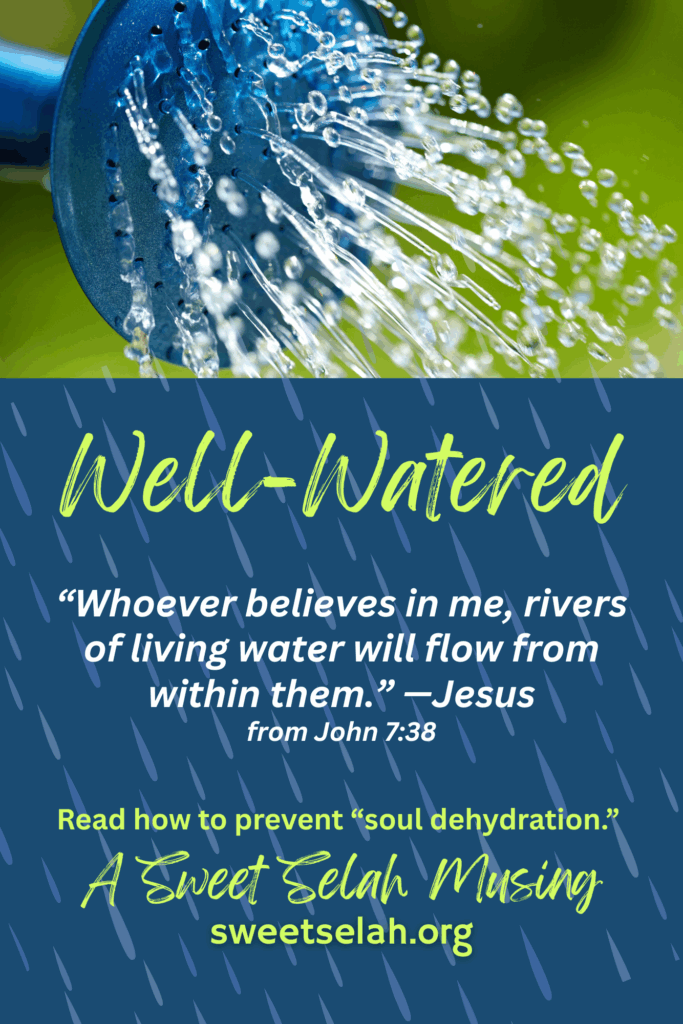 Fortunately, Jesus is neither forgetful nor negligent, as I can be, and He never overlooks the watering of His flock. If you are a Christian, the Holy Spirit lives within you! This means you have access to the living water at any time, especially when you feel dry and brittle. This can happen if we neglect our time alone with God, but it can also occur due to physical changes, loss, depression, and other factors. Read Psalm 42 for a beautiful poetic illustration (see a part of it below).