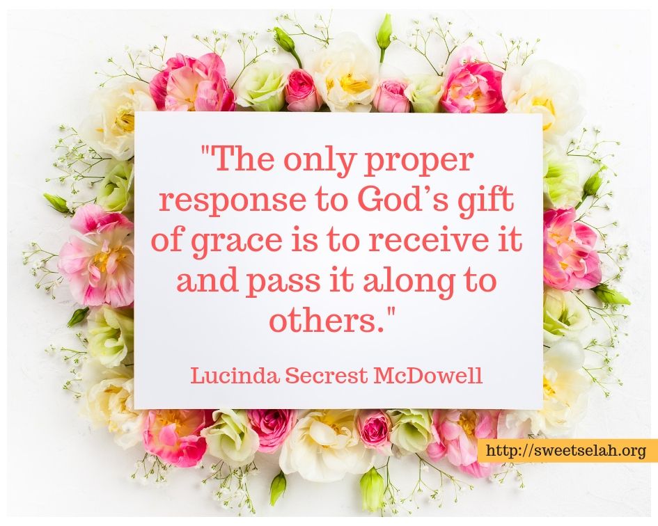 A prayer from Sharon: Oh, Father, thank You for Your grace! Thank You for these truths that remind us. Help us to live in the sure knowing that You love us and You have offered us grace—undeserved pardon—and eternity spent with You. Help us to be grace-givers to others as well. In Jesus’ Name, Amen.