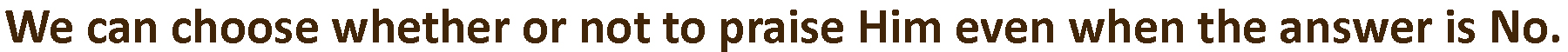 Yet, Jesus said, “No.” Ever been in that sort of situation? I have. I’ve made requests that were good and noble and really, really right from my point of view. I’ve asked, not selfishly even, for what I believed was for the good of someone else. Yet, the answer to what I wanted was … “no.” What can we learn from this story that will help when we don’t get what we asked from the hands of a good God who does indeed give good gifts?