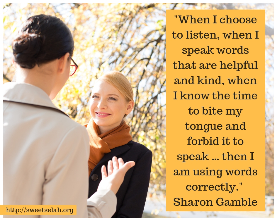 Oh, how hard it is to tame the tongue! Oh, but, when I choose to listen, when I speak words that are helpful and kind, when I know the time to bite my tongue and forbid it to speak … then I am using words correctly. And what to do with all those extra words? Blog, of course, and muse on them in your own mind!